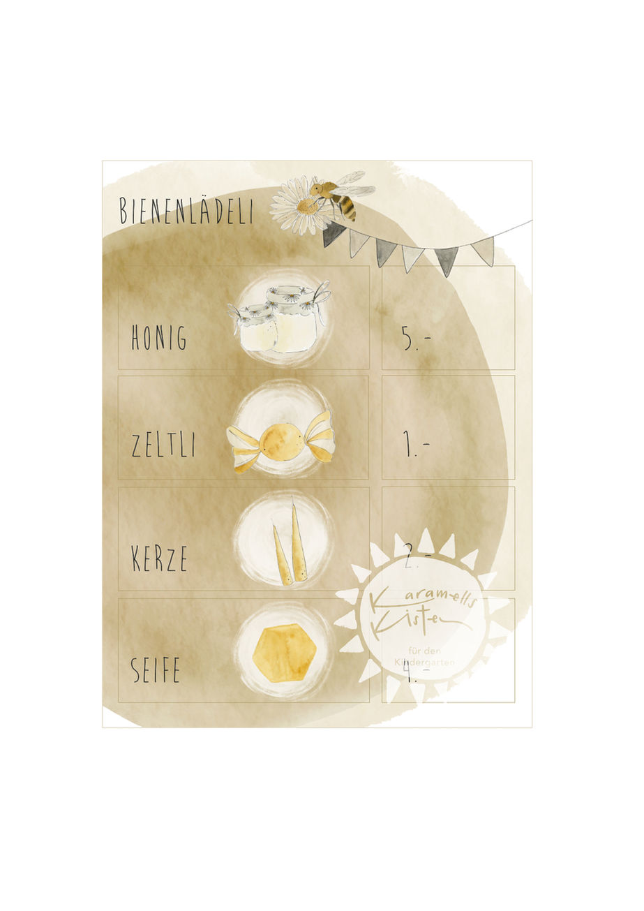 2 Preislisten für das Bienenlädeli im grossen Rollenspiel zum Thema Biene